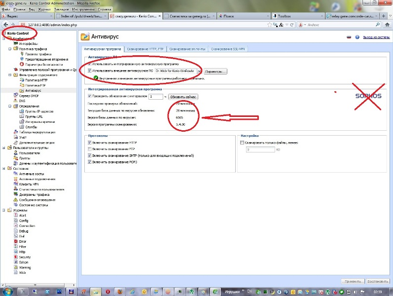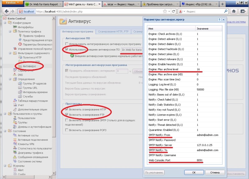 Вот, собственно, и все по подключению плагина DrWEB к Kerio Control. Подключение плагина для Kerio Connect происходит абсолютно аналогично с учетом того, что скачивается сам другой плагин - DrWeb for Kerio Mailserver - и ищется в Интернете лицензия именно для него.