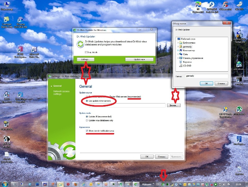 Теперь сам продукт. Помимо указанной папки продукт устанавливается еще в две другие папки: %CommonProgram% в зависимости от разрядности ОС (там располагается движок антивирусного сканера) и %ALLUSERSPROFILE%\Doctor Web (здесь располагаются файлы антивирусной базы и журнальные файлы). Менять расположение этих папок не следует - плагин внешне допускает такую замену, но на самом деле прекращает обновляться.
