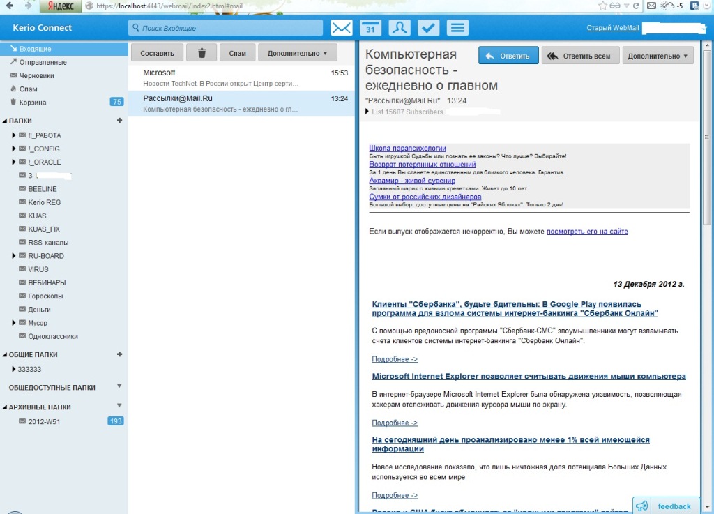 Вышла новая (как заявлено - революционная) версия Kerio Connect. Действительно - много нового. Посмотрим на главное. Патч версии 2.7 вполне успешно применен.