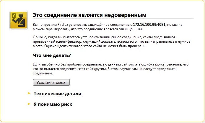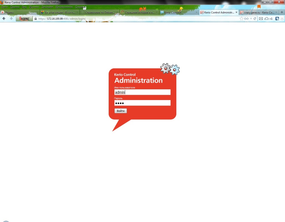 Теперь можно и в консоль администрирования Kerio Control. Естественно, что сертификат неизвестный, но мы ему поверим....