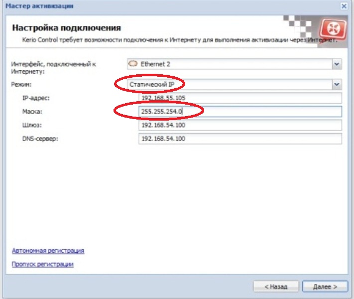 Зададим адреса для сетевых интерфейсов. Керио предлагает нечто совсем уж странное - изменим это.