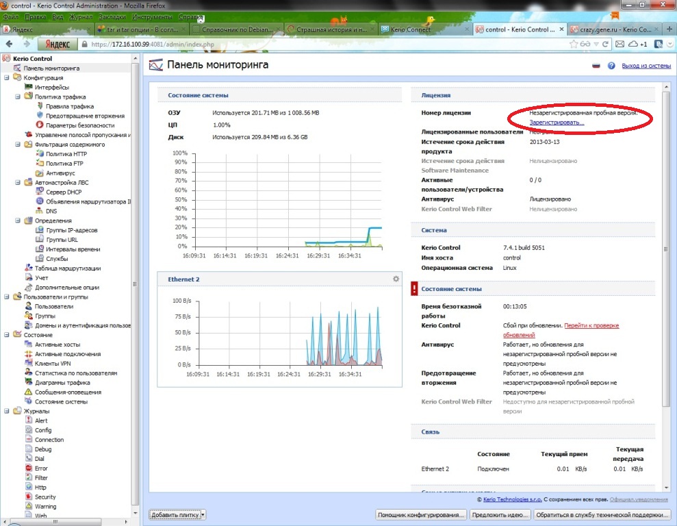 вот вроде бы и все - мы установили Kerio Control на Hyper-V и получили возможность поизучать какое-время особенности его устройства, поискать отличия от виндового варианта и посмотреть на то, как устроены обновления в Керио.