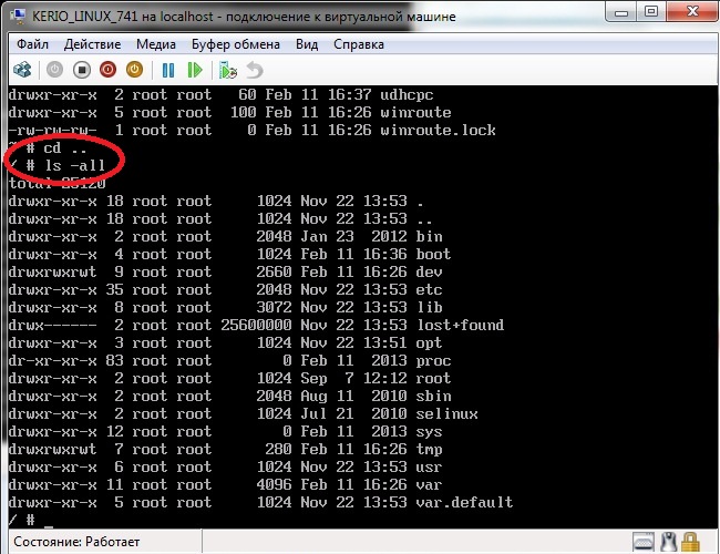 Вот и начались странности урезанного Линукса - мы сразу попадаем в директорию TMP.... Да еще с кучей скрытых файлов...