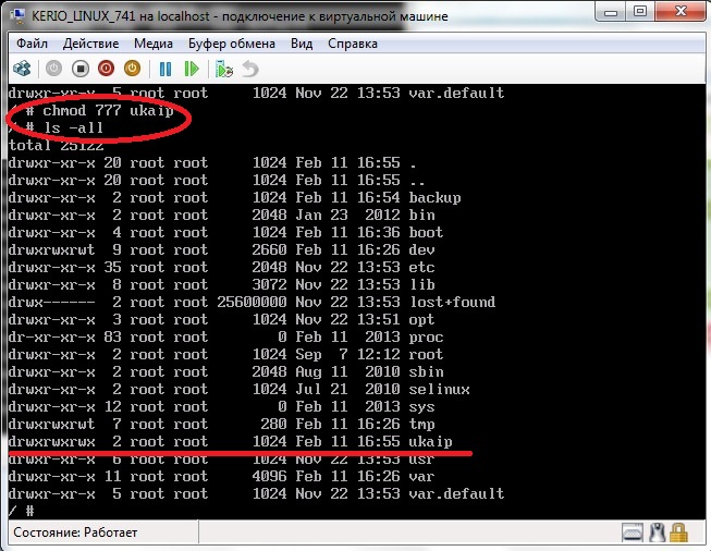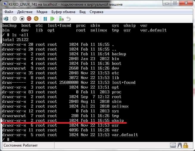 Создадим в корне две директории - BACKUP и UKAIP. В первую мы сложим исходные копии натуральных файлов без патча, во второй будем манипулировать с патчем. Строго говоря, эти директории надо создавать не в корне системы, а в директории /VAR из-за небольшого объема дискового пространства, отведенного под корень. Но нам для наших целей места хватит, потому для наглядности оставим как есть.