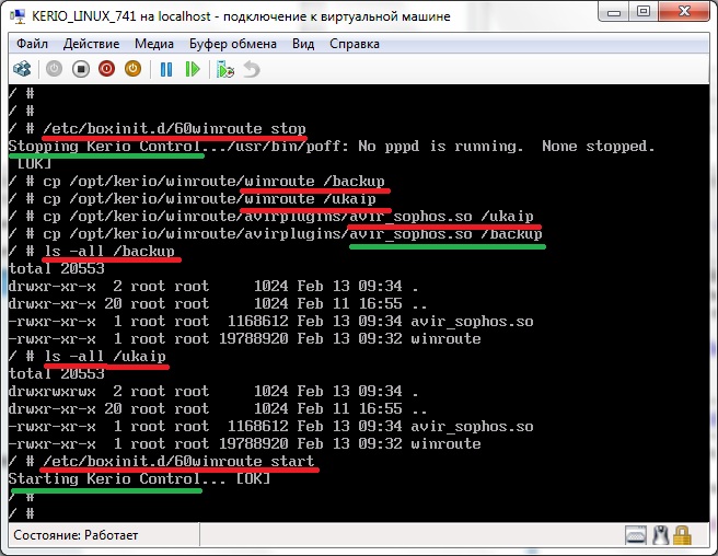 -Ss updater Файл можно создать и в виндовом блокноте, переместив его затем в керио с помощью WinSCP, но - не забудьте удалить в Линуксе лишние знаки в конце строк !!! (легче всего это сделать редактором из пакета mc, но его нет в Керио... мы его установим позже.) И запустим этот файл path.cmd, участвуя в указании нужных данных. Или просто выполните эти команды последовательно из командной строки. Все.