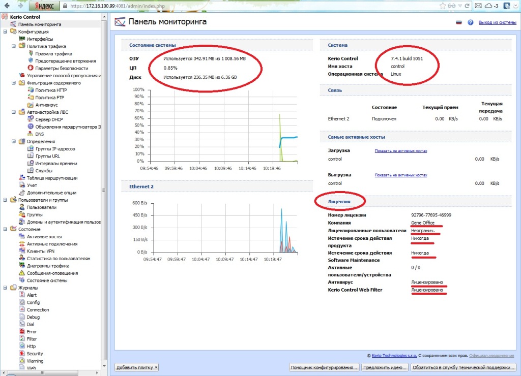 Запустим службу Керио командой /etc/boxinit.d/60winroute start Откроем консоль и убедимся, что триал снят. Еще раз замечу, что на этом этапе речь не идет о работоспособности обновлений !!!!
