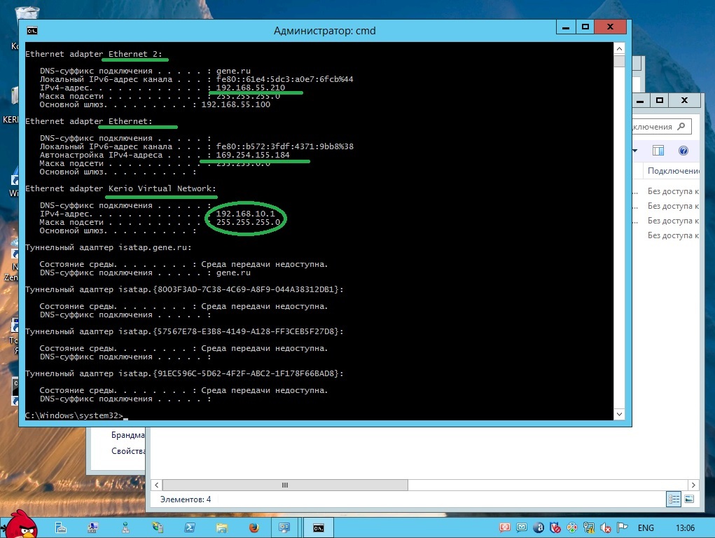 Запускаем командную строку, набираем ipconfig /all и смотрим на полученные сведения, обратив внимание на привязку адресов к наименованиям адаптеров: