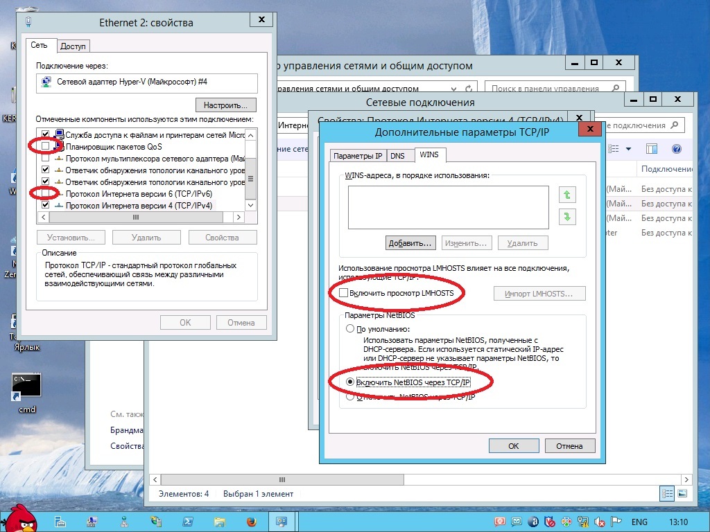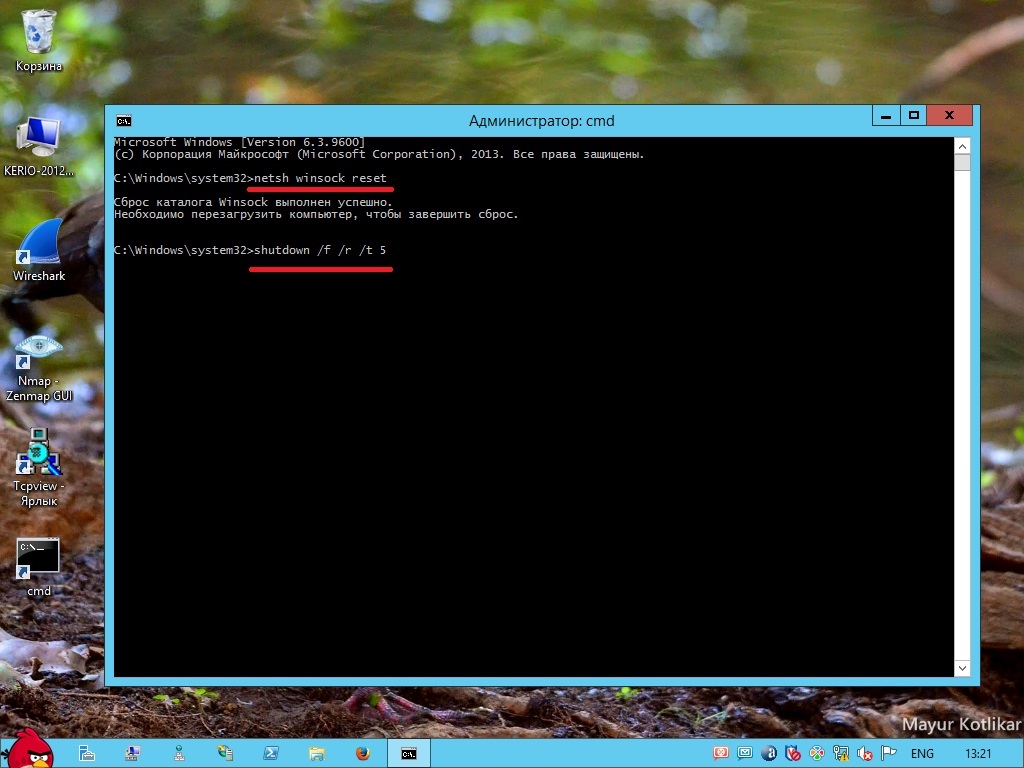 С сетевыми подключениями закончили. Применим волшебную команду netsh winsock reset и перегрузим виртуальную машину.