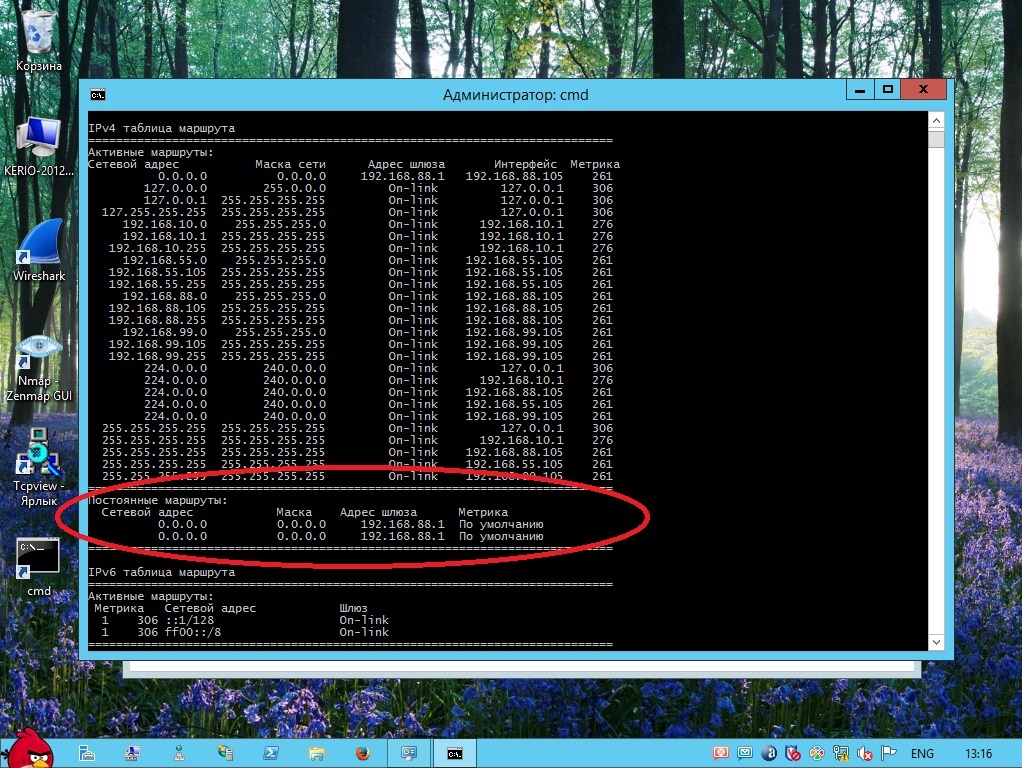 Проверяем маршруты командой route print. Получим (как правило получим) наличие двух неизвестно откуда взявшихся сетевых маршрута по умолчанию. Это весьма популярный трабл начался еще в Windows 2008, ничего страшного в нем нет.