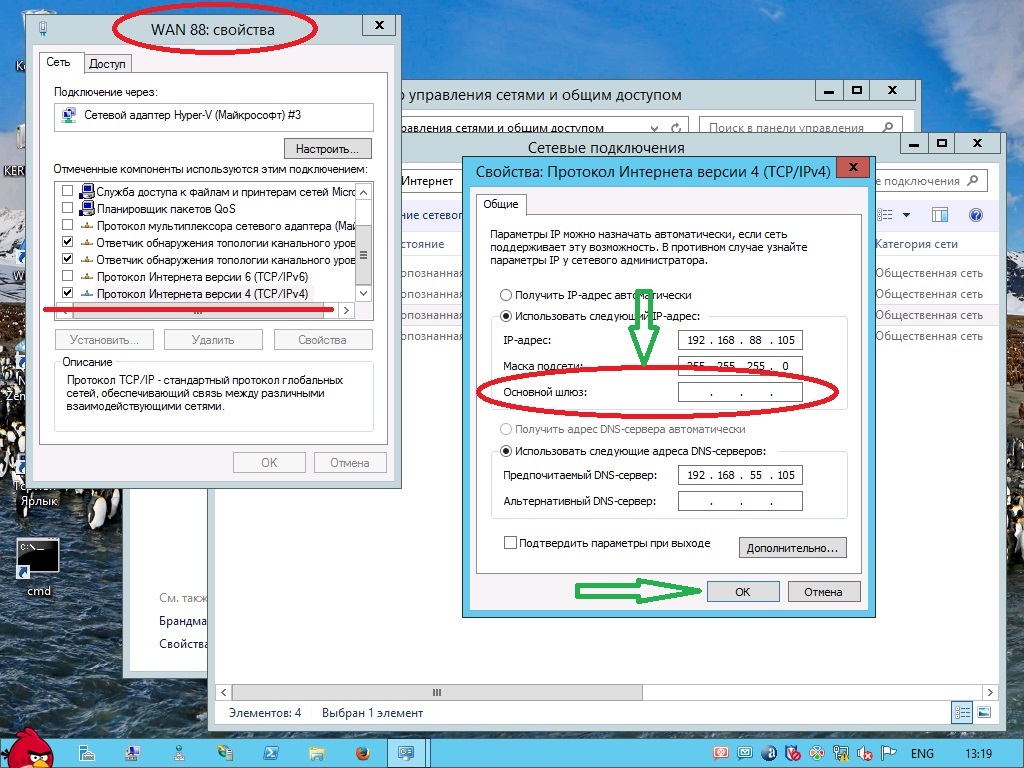 И повторно укажем шлюз для внешнего сетевого адаптера: