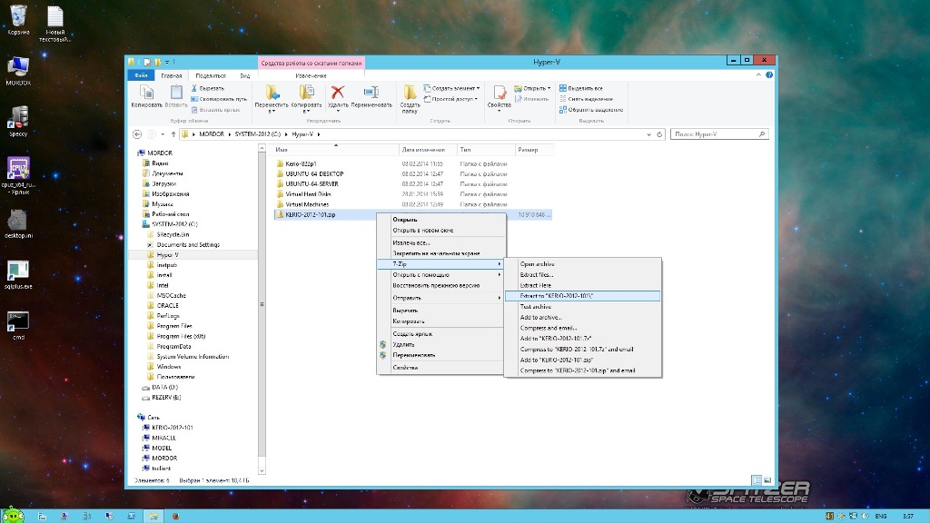 Скачиваем архив с виртуальным жестким диском KW2012 и распаковываем его архиватором 7z: