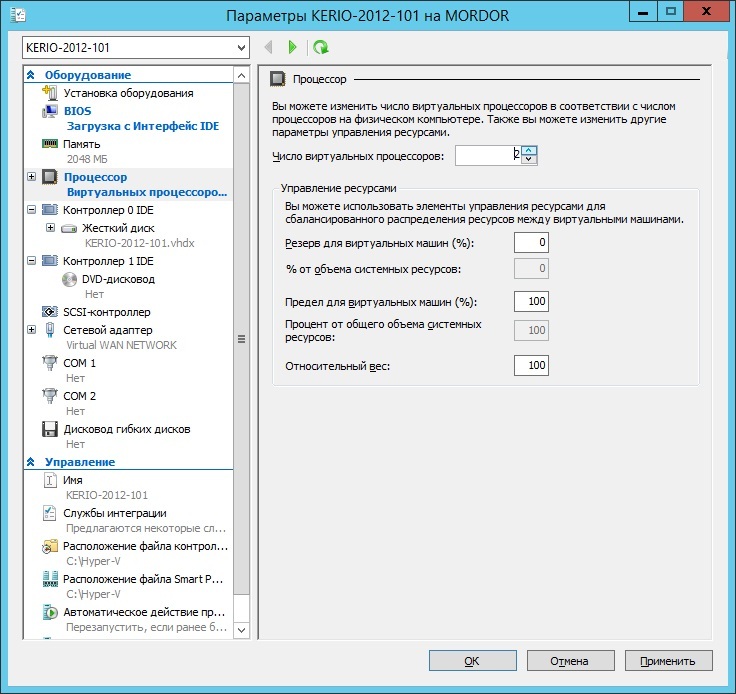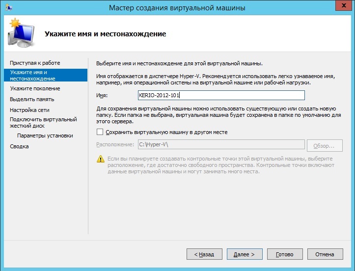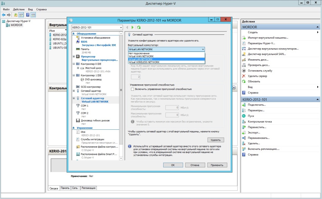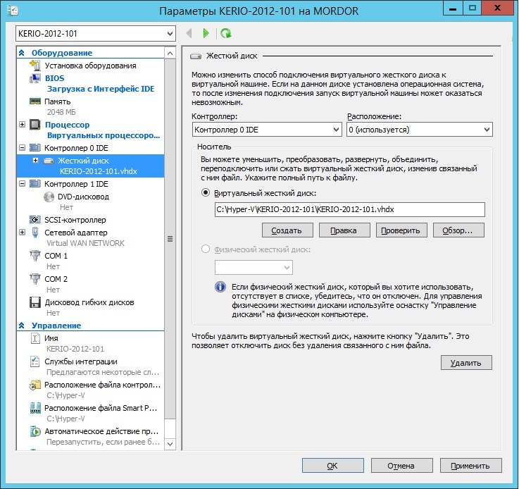 В диспетчере Hyper-V создаем новую виртуальную машину: