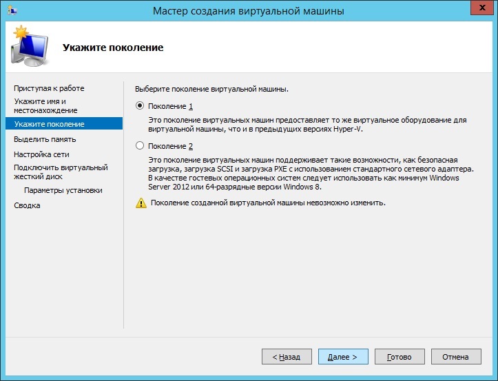 Несмотря на возможный выбор, в любом случае создаем машину первого поколения: